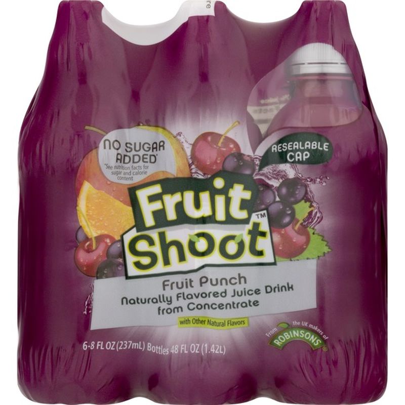 So with an exciting choice of flavours to take on-the-go kids have the freedom to do what they love with their favourite Fruit Shoot by their side. Also available in other flavorsJuice drink from concentrate10 fl oz bottle of fruit juice drink Serve chilledEasy-drink spoutShake before opening and consume within 3 daysIngredients. Sugars total including NLEA.